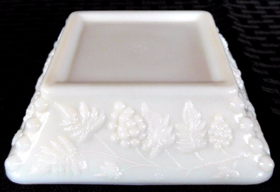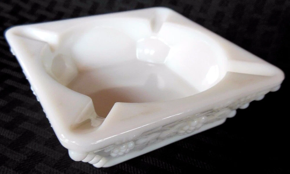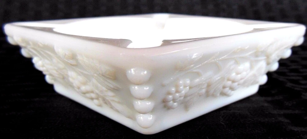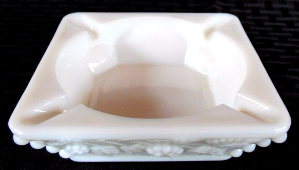 ASHTRAY Up for your consideration is a gorgeous Opaque White Milk Glass Beaded Grape Ashtray Made by Westmoreland Glass The Westmoreland Glass Maker's Mark is embossed on the bottom! This lovely Ashtray is 4" x 4" x 1 1/4" tall It is in good condition! I washed and inspected this item and found No chips, cracks or repairs! Thank You for Shopping at PAYMENT Payment is expected within 5 days of auctions' end. DOMESTIC SHIPPING I ship my items through UPS and USPS, insurance is included. (UPS does not deliver to P.O. Boxes) COMBINED SHIPPING I combine shipping to save you money! The shipping calculator should automatically combine your order. However, until the box is packed I will not know the exact shipping costs. If you overpaid - I will reimburse you! INTERNATIONAL SHIPPING I ship my items through eBay International Shipping