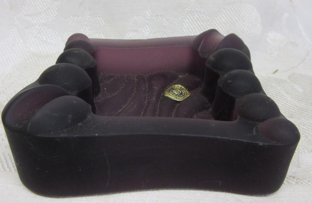 Westmoreland PURPLE Frosted GLASS SQUARE ASHTRAY with Label Westmoreland PURPLE Frosted GLASS SQUARE ASHTRAY with Label Click images to enlarge Description This is a vintage Westmoreland glass square ashtray that hs done in a purple satin-frosted finish. Measures about 3 3/8" x 3 3/8" with rouned corners. Has the original label. Has no chips or cracks. Has one tiny spot where the finish has a rub mark so it looks a little glossy in that spot. Buyer pays shipping! I am always happy to combine shipping charges on multiple purchases as long as it does not damage the items. Get images that make Supersized seem small. Showcase your items with Auctiva's Listing Templates! The complete eBay Selling Solution. Track Page Views With Auctiva's FREE Counter