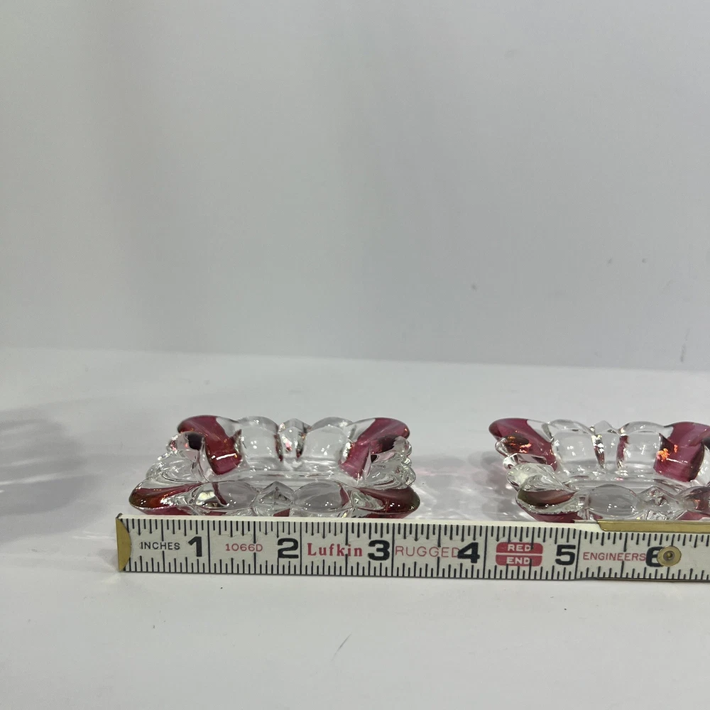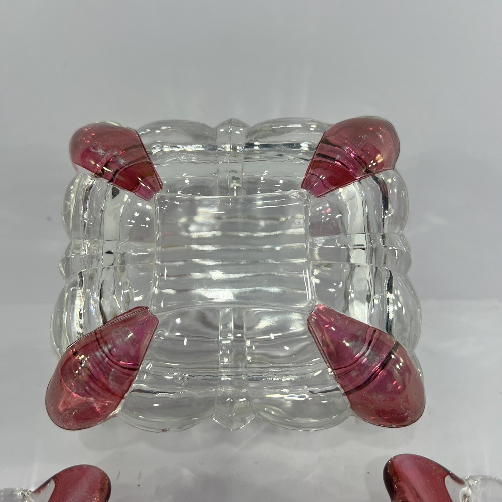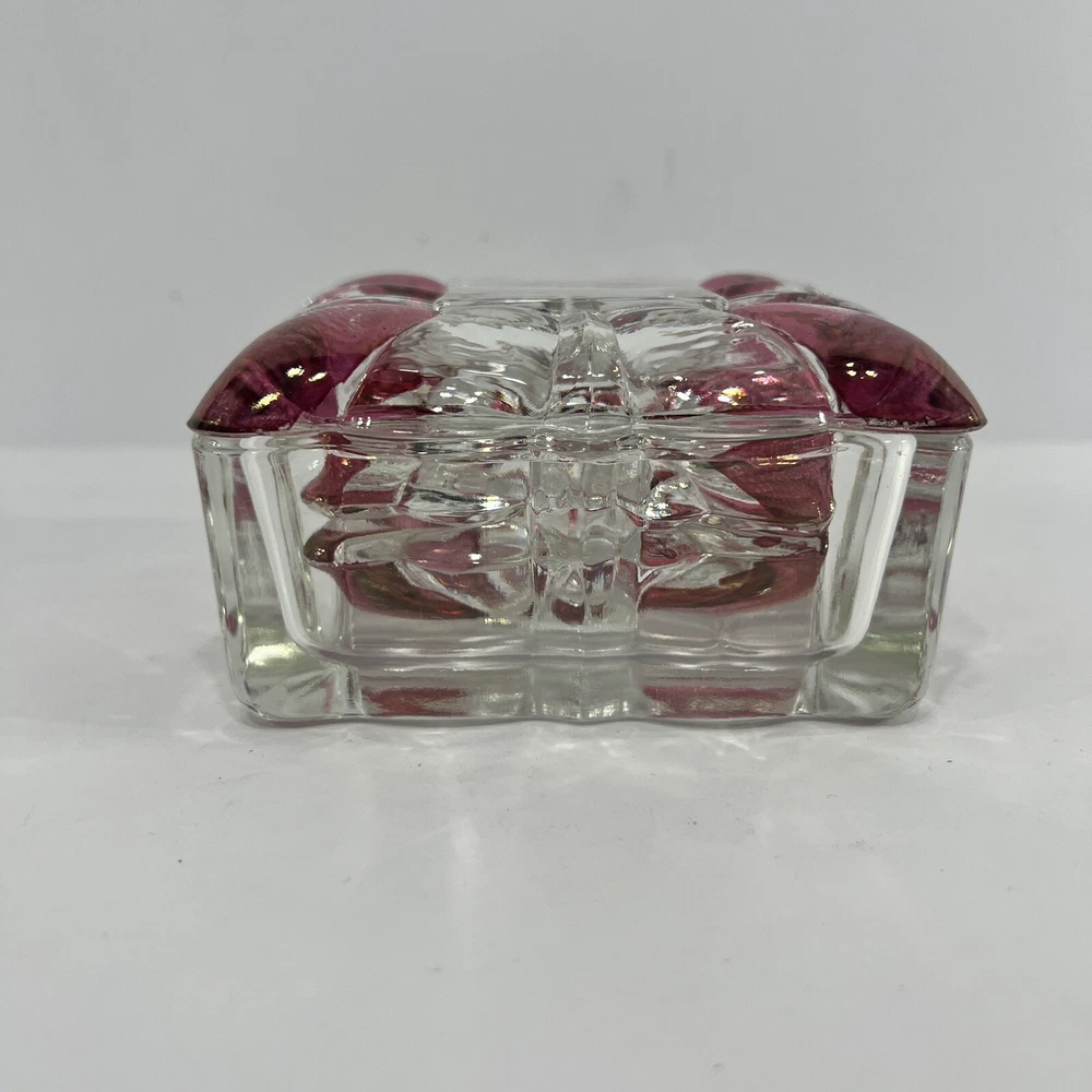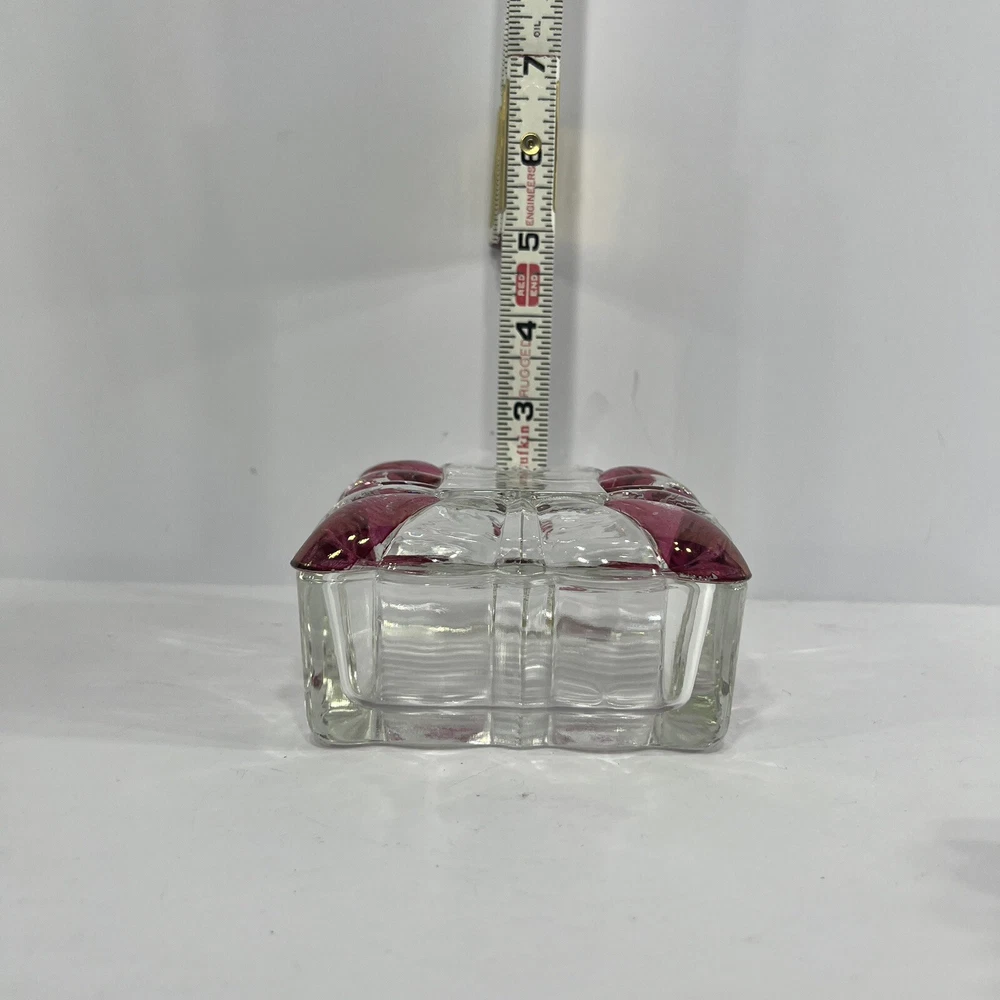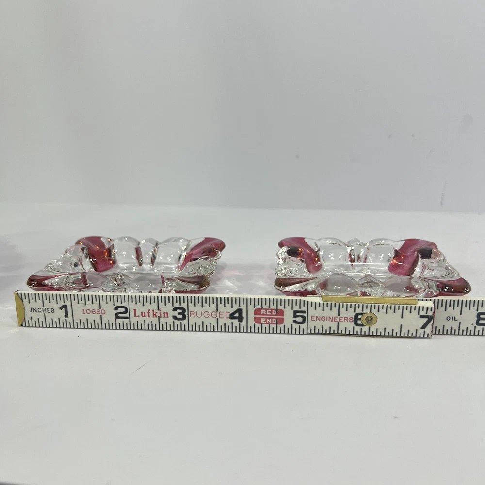 Please see photos for condition of items. Very pretty, in aged vintage condition. This Westmoreland Ruby Red Flashed Glass Cigarette Box is a decorative and functional piece that will add elegance to any room. The box has a rectangular shape and is made of pressed glass, with a removable lid for easy access. It features a beautiful red color and has one compartment for storing cigarettes or other small items. The box is also a perfect trinket dish for storing small accessories like jewelry or coins. The box is made in the United States and is a great addition to any antique or decorative collection. It is a press-molded glass piece with a smooth surface and a brand name of Westmoreland. This item is perfect for those who appreciate the beauty and craftsmanship of vintage glassware.