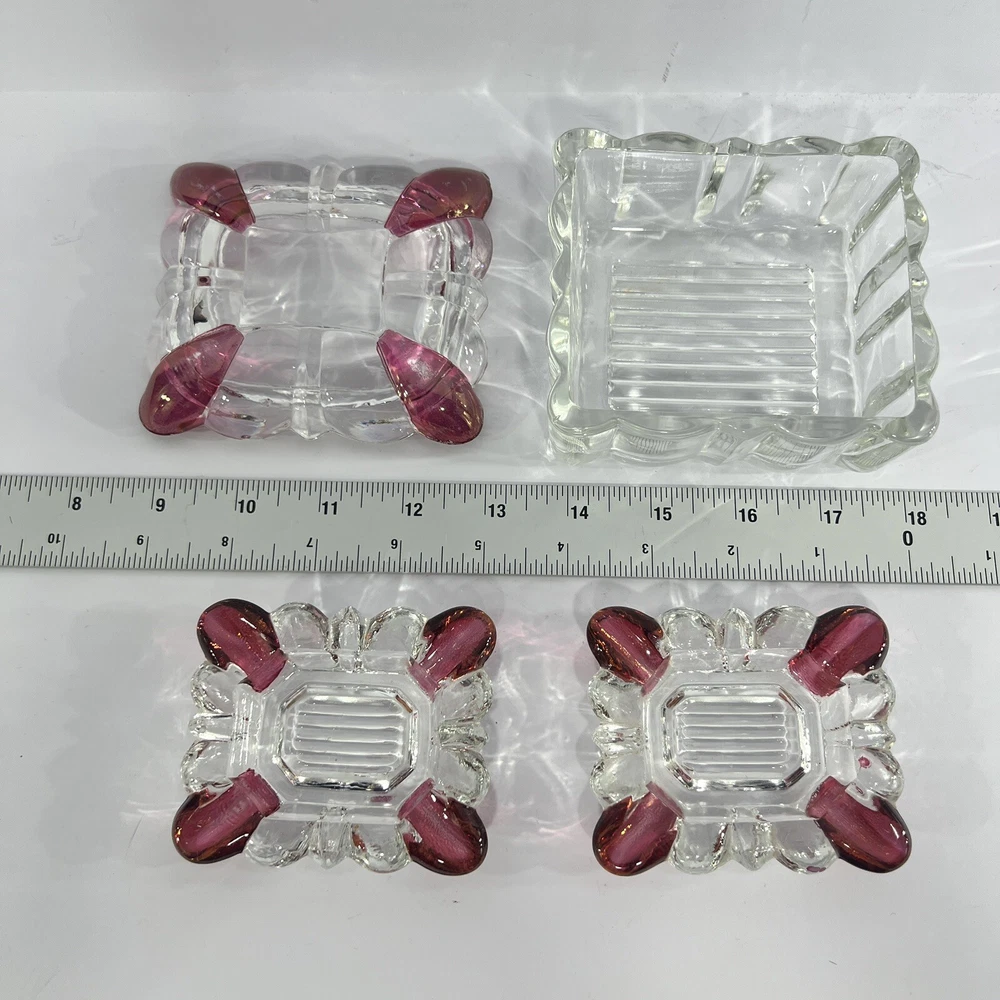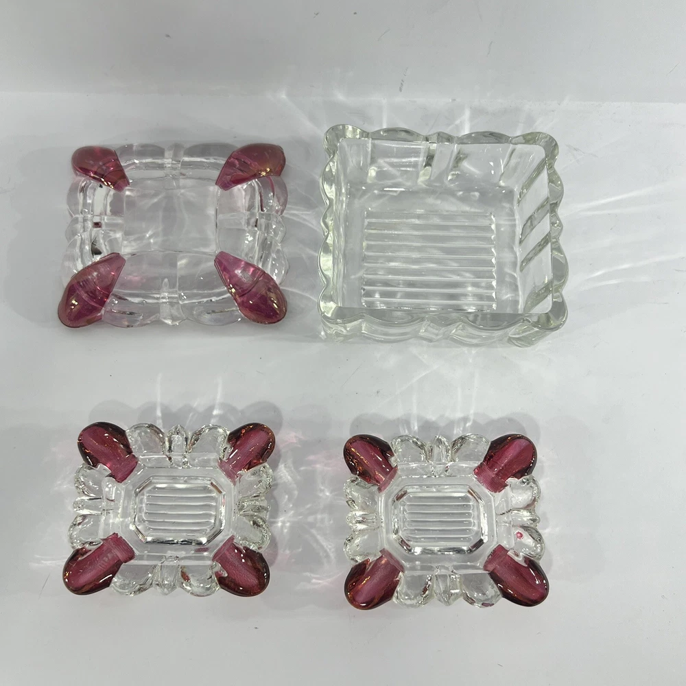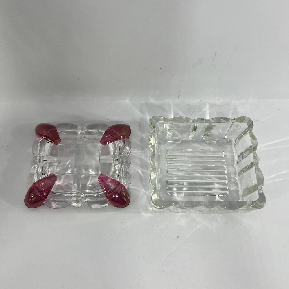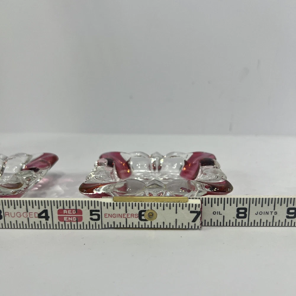 Please see photos for condition of items. Very pretty, in aged vintage condition. This Westmoreland Ruby Red Flashed Glass Cigarette Box is a decorative and functional piece that will add elegance to any room. The box has a rectangular shape and is made of pressed glass, with a removable lid for easy access. It features a beautiful red color and has one compartment for storing cigarettes or other small items. The box is also a perfect trinket dish for storing small accessories like jewelry or coins. The box is made in the United States and is a great addition to any antique or decorative collection. It is a press-molded glass piece with a smooth surface and a brand name of Westmoreland. This item is perfect for those who appreciate the beauty and craftsmanship of vintage glassware.