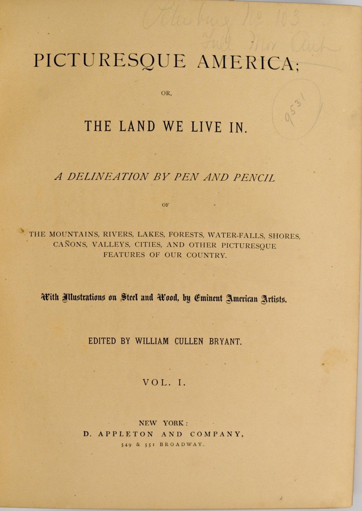 [ILLUSTRATED BOOKS] PICTURESQUE AMERICA; OR, THE LAND WE LIVE IN. A DELINEATION BY PEN AND PENCIL OF THE MOUNTAINS, RIVERS, LAKES, FORESTS, WATER-FALLS, SHORES, CANONS, VALLEYS, CITIES, AND OTHER PICTURESQUE FEATURES OF OUR COUNTRY. WITH ILLUSTRATIONS ON STEAL AND WOOD, BY EMINENT AMERICAN ARTISTS. VOL. I & II. (TWO VOLUMES) Author: William Cullen Bryant (Editor) Title: [ILLUSTRATED BOOKS] PICTURESQUE AMERICA; OR, THE LAND WE LIVE IN. A DELINEATION BY PEN AND PENCIL OF THE MOUNTAINS, RIVERS, LAKES, FORESTS, WATER-FALLS, SHORES, CANONS, VALLEYS, CITIES, AND OTHER PICTURESQUE FEATURES OF OUR COUNTRY. WITH ILLUSTRATIONS ON STEAL AND WOOD, BY EMINENT AMERICAN ARTISTS. VOL. I & II. (TWO VOLUMES) Publication: New York: D. Appleton and Company, [1872; 1874] Description: Full Leather. Two large quarto volumes; in the publisher’s full brown morocco, each with embossed borders and elaborate vignette titles in gilt; there is some wear to the titles; with all edges gilt; dentelles turn-ins; spines with raised bands lettered in gilt in compartments; marbled endpapers.; with illustrations, both in-text wood-cuts and full page steel engravings, throughout both volumes; there is some minor and quite scattered foxing, but overall a beautifully clean set; there is minor wear to the corners.~~William Cullen Bryant’s Picturesque America, complete in two volumes: a travel guide to the outdoor attractions and phenomena, grouped by geographical region of the United States. Very Good binding. Seller ID: 299079 Subject: History & Military, Special Press and Illustrated Books Black Swan Books Richmond VA We specialize in antiquarian books, classic literature, the Civil War, Viriginiana, travel, art, children's books, and other subject areas, including religion and philosophy . Terms Payment via PayPal is preferred. All orders ship within two [2] business days, Monday through Friday by standard mail, USPS Media Mail. Combined orders and expedited shipping is available. Please contact us for a shipping quote before ordering. All items are guaranteed as listed and described. Any item may be returned within 30 days for any reason in the condition is which they were sent. This listing was created by Bibliopolis.