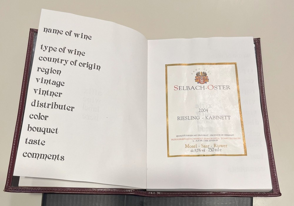 Wine Tasting Log Book : Wine Tasting Journal, Wine Tasting Notebook, Wine Log Book to Jot down Wine Tasting Notes for Wine Lovers. First Page has label pasted into it as example (see photos). 60 blank pages total. The insert is removable. Are you looking for a great wine tasting companion? This wine tasting journal is the perfect companion you can take along to record your experiences and consult before buying a bottle of wine. This book offers easy and quick way to record your wine tasting notes with the following features: - Perfect size to carry around (5' X 7.5") - Soft Cowhide Leather cover with elegant cover design. Cover can also be used for paperback books or other journal insert. - Maintain a record of all wines tasted. - Record all the basic details of each wine you taste- including type, country, region, vintage, vineyard, distributor. - Describe the look, smell and taste of the wine (color, bouquet, taste) - Rate each wine and record your comments. - Room to have addtional comments and/or wine label This is a great gift for wine lovers! Get this great journal for your friends, family or yourself!