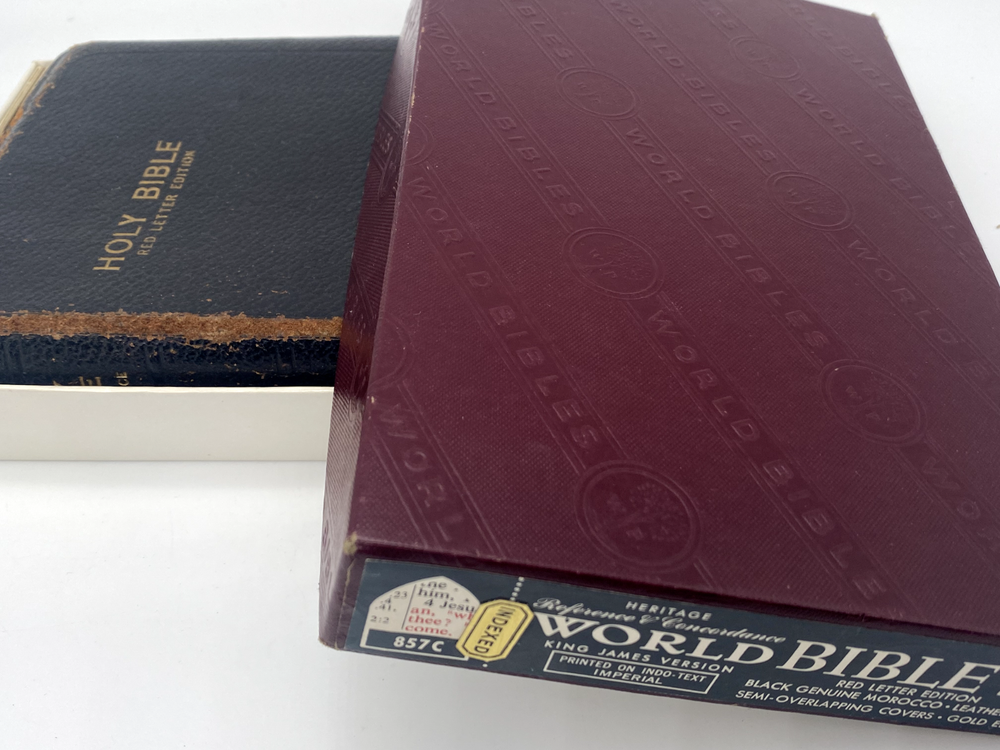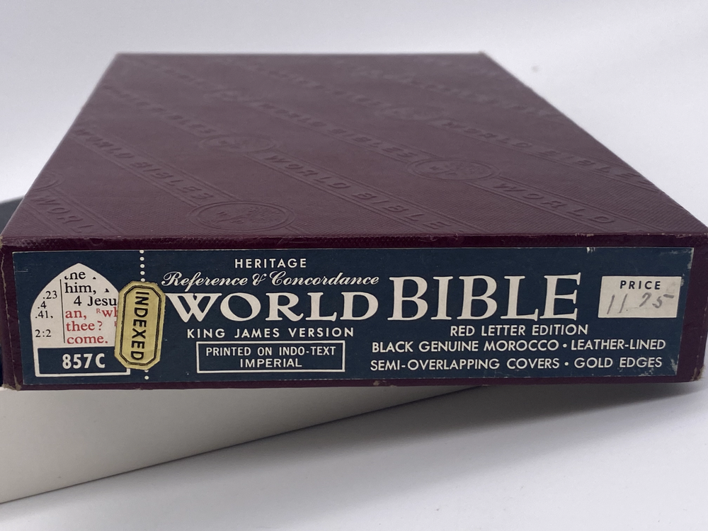 Heritage Reference Concordance World Bible KJV RLE 857C Indexed Black Leather * Thank you for visiting our store! We provide next day shipping for all paid purchases (except on Sundays), and all shipments can be tracked on the eBay website. However, delivery dates provided by eBay are estimates only and are not guaranteed by USPS, FedEx, or UPS. These shipping companies do face delivery delays during holiday seasons and other periods of peak volume. Thank you for your business and understanding, and we look forward to providing you excellent products and service.