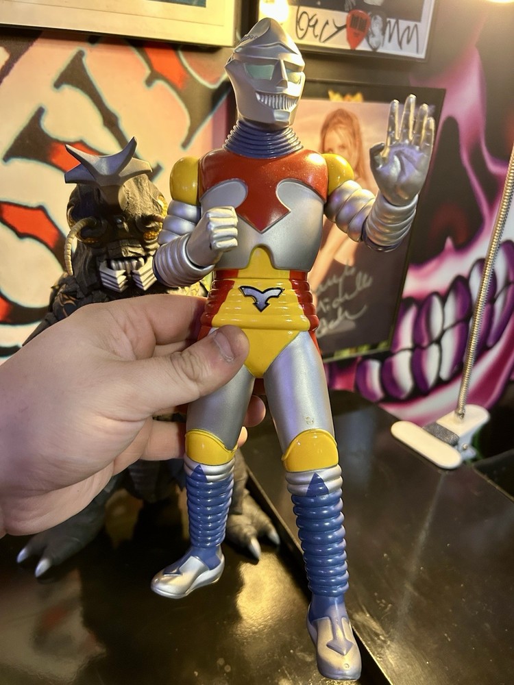 In this listing you will receive as pictured. A jet jaguar bank figure with some minor scuffs that looks good paired with the 30cm x plus megalon and as a bonus you will receive the blu ray of Godzilla vs megalon that’s opened and maybe watched twice. You will also receive the box that the x plus megalon came with but the box does have some damage from being in storage as you can see in the pictures I’ve provided. For more Godzilla items please see my other listings and thank you.
