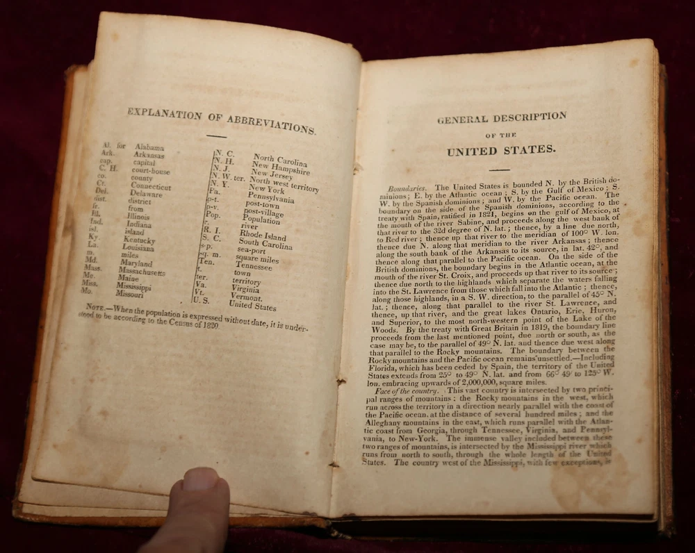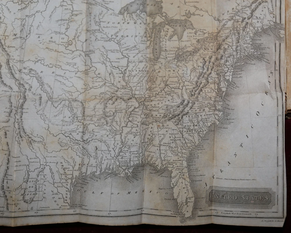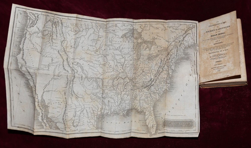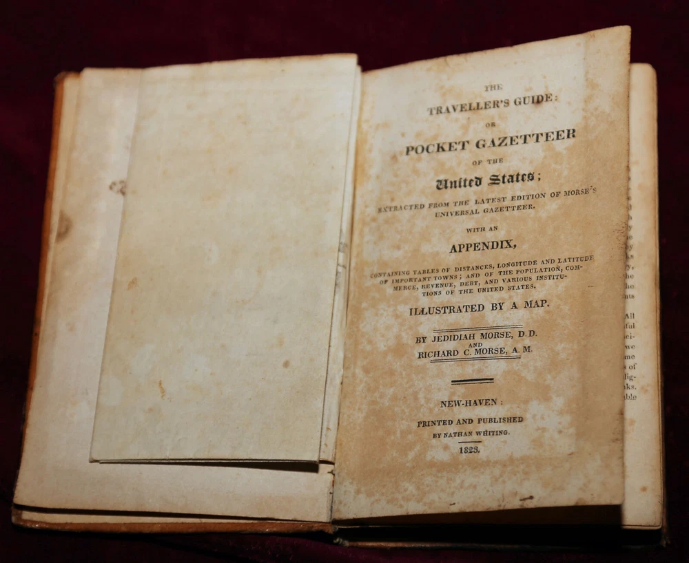 EXTREMELY RARE!! A Traveller's Guide or Pocket Gazeteer of the United States Illustrated by a Map Jedidiah and Richard MORSE New Haven 1823 1/ EARLY STYLE POCKET GAZETEER OF THE UNITED STATES! Complete with the Original Folding Map 1823 GOOD CONDITION!! Extremely Early Edition!! ORIGINAL FULL LEATHER BINDING!! EXTREMELY RARE IN THIS BEAUTIFUL FULL LEATHER!!!! Extremely Sought After HIGHLY FASCINATING!! ORIGINAL EARLY EDITION!! A VERY EXCITING AND SCARCE OPPORTUNITY TO OBTAIN AN EARLY ORIGINAL EDITION Rare and Collectable Complete and as issued!! Highly interesting and important!! Highly Sought After!! A great addition to your collection!!!! A wonderful addition to your antiquarian atlas or map collection. A wonderful addition to your collection - Good condition! Some Foxing - see images, Leather covers in remarkable condition - see photo's - all text present!! A real rarity that will not fail to be a real investment in the years to come!! PLEASE CHECK OUT MY OTHER AUCTIONS FOR MORE RARE AND EXCITING BOOKS, PHOTOGRAPHS AND NEWSPAPERS!! The successful bidder to pay $15.95 shipping. International extra