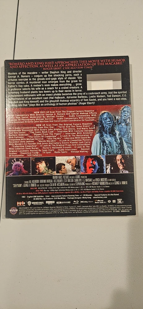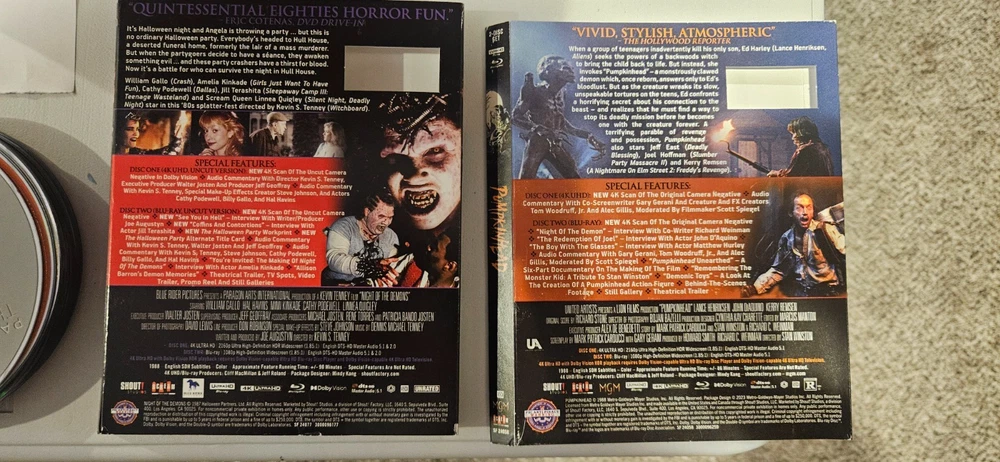 NO MOVIES ARE INCLUDED (SLIP COVERS ONLY) All these slip covers are from blu-ray, most are 4K and will be noted if 4K. The ebay app may not show the full description whether 4K or not, so please read. A lot of Shout Scream Factory, Kino Lorber, and other 4K and Blu-ray slipcovers. TV seasons are towards the bottom. Any questions on the quality of certain slips feel free to ask and I will upload more images. The Abandoned '06 (Unearthed Films) Aliens 4K (Good x 2) American Ninja (KL, Good) American Ninja 2 (KL, Good x 3) Arctic (Good) Army of Darkness 4K (Good x 2) Batman Begins 4K (Good) Batman Death in the Family (Good) Batman Mask of the Phantasm 4K (minor spine dent) Belly 4K (Good) Black Christmas 4K (minor spine wrinkle) Blind Fury VHS look (Good) Blue Steel (Good) The Blob 4K (Average x2) Brotherhood of the Wolf 4K (Good x 3) Bubba Ho-Tep 4K (Good x 2) Bug 4K (KL, Good) The Burning 4K (Good) Candyman 4K '92 (Good) Candyman 4K '21 (Average) Child's Play 4K (Good x 2) Child's Play 2 4K (Good x 2) Child's Play 3 4K (Good) Children of the Corn 4K (Arrow, Good) Coen Brothers 4 film slip box (Good) Conjuring 3 Devil Made Me Do It 4K (Good) Constantine House of Mystery (Good) Crawl BD + DVD (Good) Creed 3 4K (Average) Creepshow 4K (Good x 4) Cry Baby 4K (KL, Good) Cujo 4K (average, wrinkle spine) Curse of Chucky 4K (Good x 2) Dawn of the Dead 4K '04 (Good x 2) Dead Silence 4K (Good) Deadly Games (Arrow, Good) Deadpool 2 4K (Good) Deathstroke Knights & Dragons (Good) Deep Star Six (KL, Average) The Departed 4K (Good) Dog Soldiers 4K (Good x 3) Earth Girls Are Easy (Good) Equalizer 3 4K (crease on front) Escape from Alcatraz 4K (small crease on front) Escape from L.A. (Shout, good) Escape from L.A. 4K (Good) Evil Dead 4K '13 (Good x 3) Event Horizon (Shout, Good) The Exorcist 4K (Good) The Fog 4K '79 (Good) The Forest (Code Red, Good) Friday the 13th 8 movie collection slip box (good) The Funhouse 4K (some wrinkles & wear) G.I. Joe Retaliation 4K (Good) Godzilla 4K '14 (Good x 2) Great White (Good) $2 The Green Inferno (Good) The Green Knight 4K (Good) The Green Mile 4K (Good) The Grinch 4K (Good) Halloween Kills 4K (Good) Hang 'Em High (Shout Select, Good) Happy Birthday to Me (KL, Average) The Haunting '99 (Paramount Presents, Good) Highlander Director's Cut 4K (Good x 5) How the Grinch Stole Christmas Jim Carrey (Good) The Howling 4K (Good x 2) Inglourious Bastards 4K (Good x 2) Injustice 4K (Good) Invasion of the Body Snatchers 4K (KL, Good x 4) Jungle Cruise 4K (Good) Jurassic World Fallen Kingdom (Good) Jurassic World Dominion 4K (Good) Justice League vs Fatal Five (Good) Kick-Ass 2 4K (Average) King Kong '76 (Good) Krampus 4K (Shout, Good, sticker on back) The Last Starfighter 4K (Arrow, Good) The Last Unicorn 4K (Shout, Good) Leviathan 4K (Good) Legends of the Fall 4K (Good) Lifeforce 4K (Good) The Lord of the Rings 4K Trilogy slip box (Good) The Lost (Ronin, Good) The Lost Boys 4K (Good) Malevolence 3 (Average, sticker on back) Maniac 4K '80 (Blue Underground, Good) Maniac Cop 2 4K (Blue Underground, Good) Maniac Cop 3 4K (BU, Good) The Matrix Resurrections 4K (Good) The Meg 4K (Good) Minions Rise of Gru 4K (Average) Mortal Kombat Legends Scorpions Revenge 4K (Good) Monster Hunter 4K (Good) Motel Hell 4K (Good) Needful Things 4K (KL, Good) Night of the Demons 4K (Good x 5) Night of the Demons 2 (Good x 2) Night of the Demons 3 (Good x2) No Time to Die 4K (Average) Nobody 4K (Good) Pearl (Good) The People Under the Stairs 4K (Good) Pulp Fiction 4K (Good) Pumpkinhead 4K (Good) Pyewacket (Good) Red Dawn 4K (Good) Rendel (wrinkle spine) The Return of the Living Dead 4K (Good, x 2) The Return of the Living Dead Part 2 (Good) The Return of Swamp Thing (MVD, Good) Robocop 4K '14 (Average, .25" tear on spine) Robocop 2 4K (Good) Saw X 4K (Good x 2) Scream 3 4K (Good) Shocker 4K (Good) Showdown (MVD, Good) Silent Rage (Vhs look, Good) Species 4K (Good x 2) Spider-Man No Way Home 4K (Good x 2) Split Second (MVD, Good) The Strangers 4K (Good) Stone Cold (KL, Good) Sudden Death 4K (KL, Good) The Suicide Squad 4K (Good) Super 8 4K (Good) Super 8 (Good) Superman Man of Tomorrow (Good) Tales from the Darkside 4K (Good) Terminal Invasion (KL, Good) They Live 4K (Good) Titanic 4K (Good x 1) Transformers 4K 5 movie slip box (Good) Transformers Rise of the Beasts 4K (Good) Transformers The Movie 4K '86 (Average x 6) True Lies 4K (Good) Two Mules for Sister Sara 4K (KL, Good) Two Mules for Sister Sara (KL, Average) Underworld Rise of the Lycans 4K (Good) John Carpenter's Vampires 4K (Scream, Good) The Vanishing (Good, x 2) Venom Let there be Carnage 4K (Good) Waxwork & Waxwork 2 (Vestron, Good) What Lies Beneath 4K (Scream, spine wrinkle) Wonder Woman 1984 4K (1 spine dent) Wrath of Man (Good) Wrong Turn '21 (Good) TV Shows Basilisk Complete Series (small tear top corner) Castlevania Season 3 (crease on front) Castlevania Season 4 (Good) Counterpart First Season (Good x 2) Fear the Walking Dead First Season Lenticular (Good) Fear the Walking Dead Fifth Season (Good) Fear the Walking Dead Seventh Season (Good) Legends of Tomorrow Fifth Season Slip Box (Good) The Outsider Slip Box (Good) Saber Rider and the Star Sheriffs (Good) Stargirl First Season Slip Box (Good) Supergirl First Season Slip Box (Good) Supergirl Third Season Slip Box (Good) The Twilight Zone Season One '19 (Good) Vikings Season 6 Volume 1 Slip Box (Good)