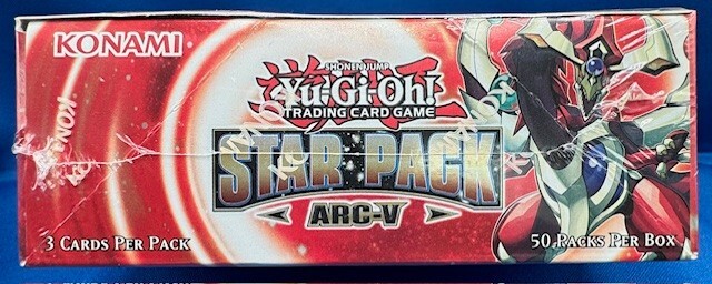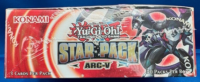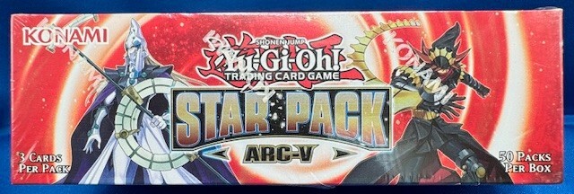 This Yu-Gi-Oh! TCG booster box is factory sealed and contains the highly sought after 1st Edition Star Pack ARC-V set. The box includes standard sized cards in English language and is manufactured by Konami. The set features a variety of cards and configurations, making it perfect for collectors and players alike. The box is suitable for ages 6 and up and is a great addition to any collection of collectible card games.