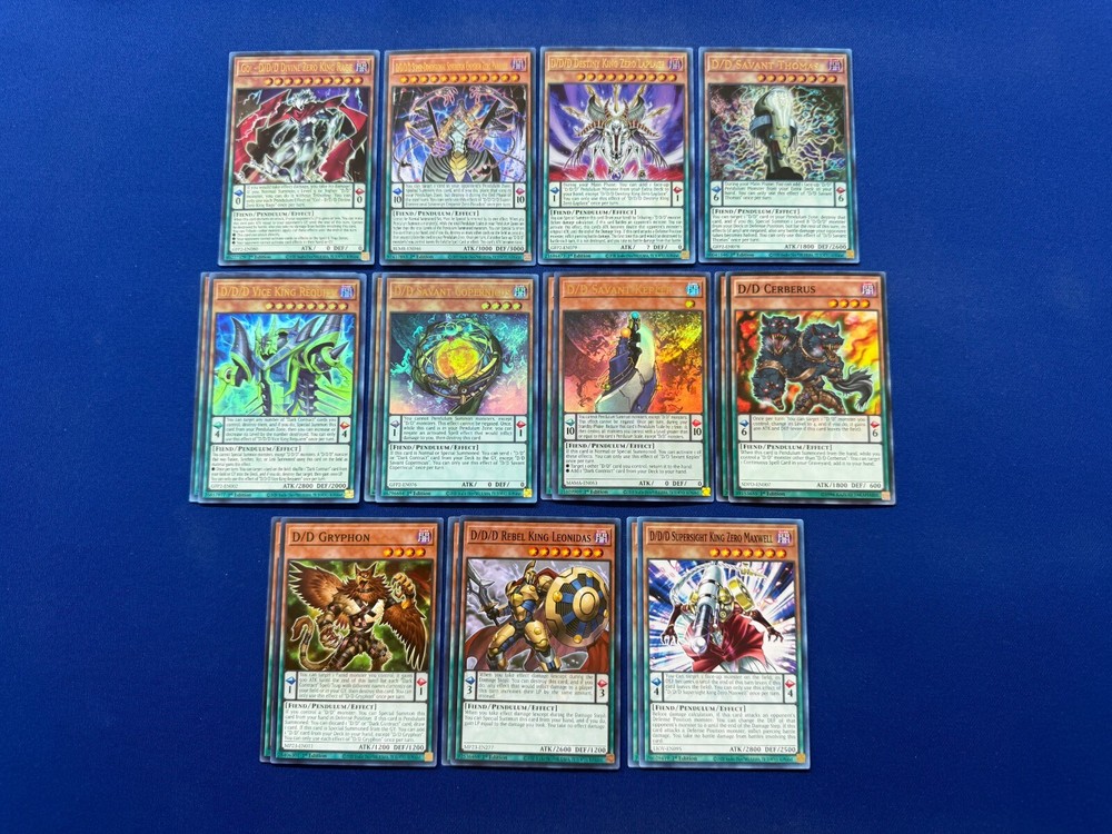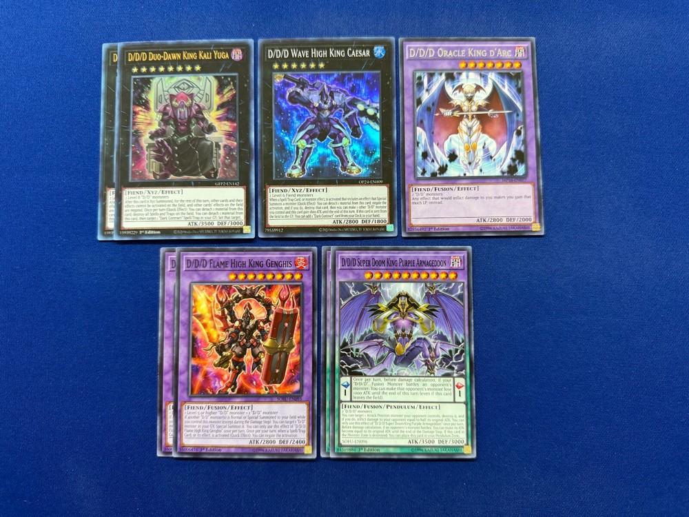 This deck was designed and tested to be ready to play! All cards are in near mint condition (Small chance of lightly played when older cards are involved). By purchasing this item you will receive the following cards: Extra Deck (x8): D/D/D Duo-Dawn King Kali Yuga (x2) - Super Rare D/D/D High King Caesar (x1) - Super Rare D/D/D Super Doom King Purple Armageddon (x2) - Common D/D/D Flame High King Genghis (x2) - Common D/D/D Oracle King d'Arc (x1) - Common Monsters (x30): Go! - D/D/D Divine Zero King Rage (x1) - Ultra Rare D/D/D/D Super-Dimensional Sovereign Emperor Zero Paradox (x1) - Ultra Rare D/D/D Destiny King Zero Laplace (x1) - Ultra Rare D/D/D Vice King Requiem (x2) - Ultra Rare D/D/D Savant Thomas (x1) - Rare D/D/D Rebel King Leonidas (x2) - Common D/D/D Supersight King Zero Maxwell (x2) - Common D/D Savant Copernicus (x2) - Common D/D Cereberus (x2) - Common D/D Gryphon (x2) - Common D/D Savant Kepler (x2) - Common D/D Lamia (x2) - Super Rare D/D Berfomet (x2) - Rare D/D Swirl Slime (x2) - Common D/D Nerco Slime (x2) - Common D/D Ghost (x2) - Common D/D Vice Typhon (x2) - Common Spell (x5): Forbidden Dark Contract with the Swamp King (x1) - Common Dark Contract with the Gate (x1) - Common Dark Contract with the Swamp King (x1) - Common Dark Contract with Patent License (x2) - Common Trap (x5): D/D/D Headhunt (x3) - Common Contract Laundering (x2) - Common Shipping and Handling: Both Domestic and International Shipping are offered. All deck items are shipped via First Class Parcel Service (3-5 Days) and comes with tracking. Priority Mail Service (1-3 days) is also offered for Domestic buyers. Price is calculated based on the buyer's location. Payment: Payments are due within 3 days of ordering. Otherwise an Unpaid Item Case will be opened. If you have any questions or concerns, send a message and we'll answer as soon as we can! Please remember to leave feedbeck if you can, especially if you enjoy your purchase! Thank you for your patronage and support!