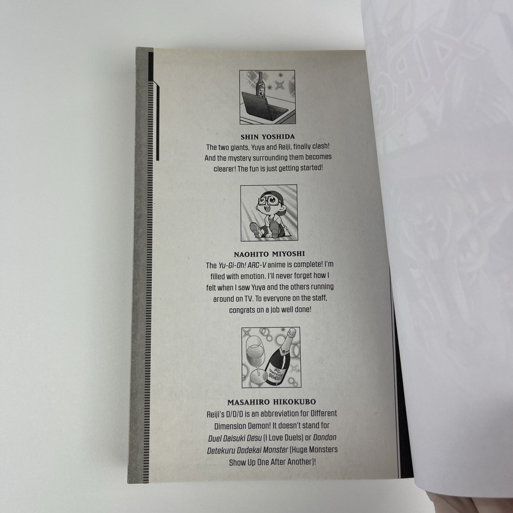 This listing is for Yu-Gi-Oh! Arc-V Vol. 3 Manga (English) - Shonen Jump Edition. This captivating installment features vivid illustrations by Naohito Miyoshi and story by Shin Yoshida, with contributions from Masahiro Hikokubo. The manga is in good condition, with crisp pages and minimal shelf wear on the cover. Perfect for collectors or fans of the Yu-Gi-Oh! franchise who love action-packed duels and intriguing storylines. The spine is intact, and the binding is firm. A must-have addition to any manga collection! Condition: Pre-owned and in good condition. Minor wear and scuffs mark with normal use. NO CARDS ALL ITEMS ARE SOLD AS-IS AS PHOTOGRAPHED. PROPS NOT INCLUDED.