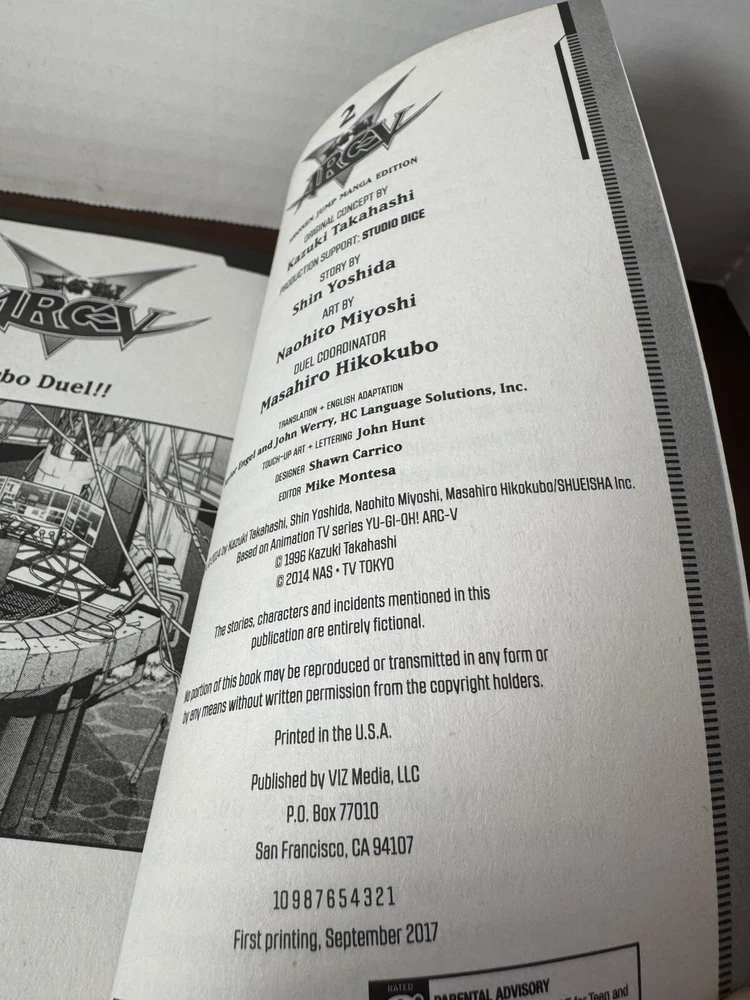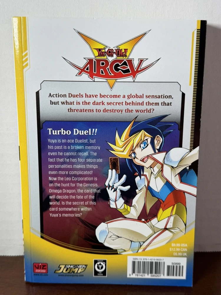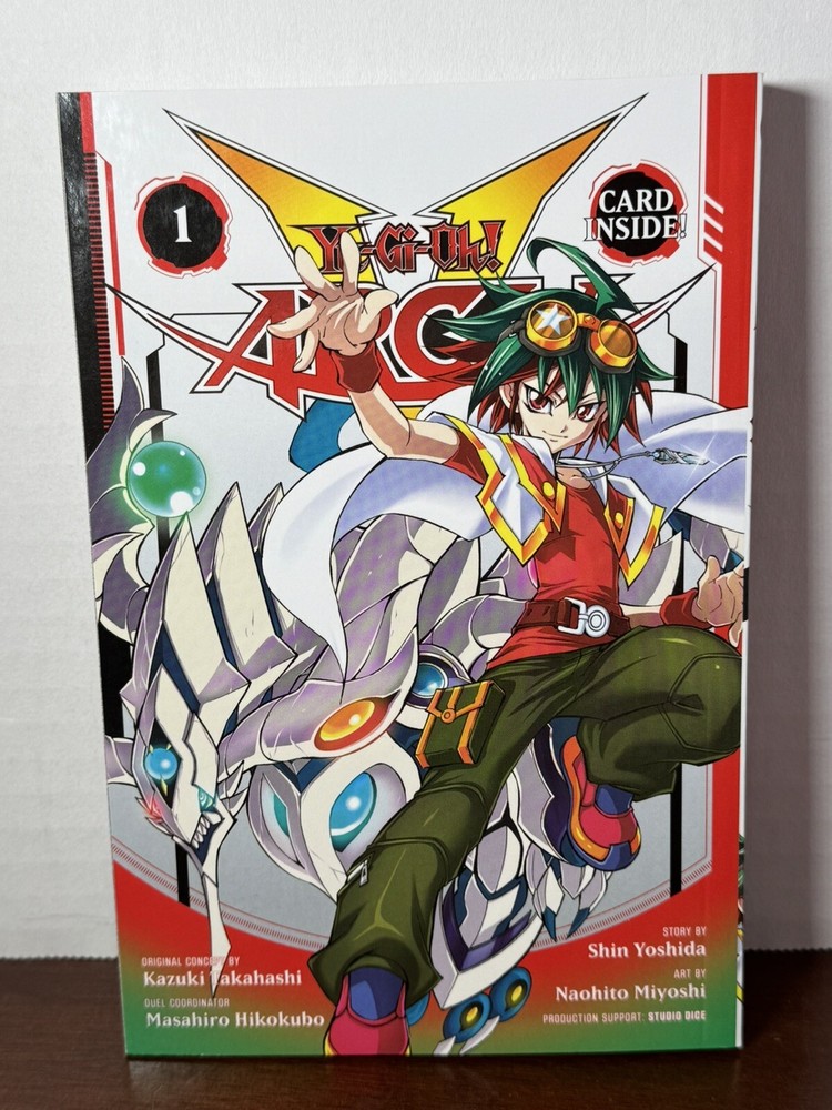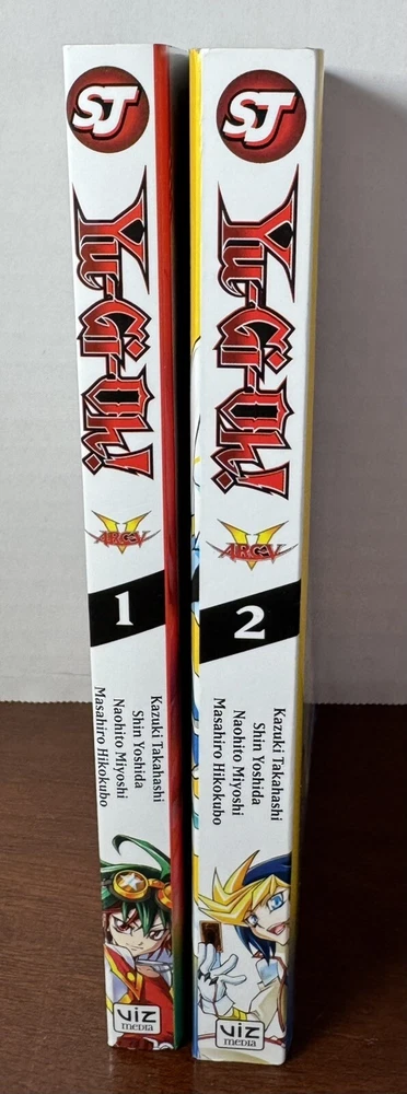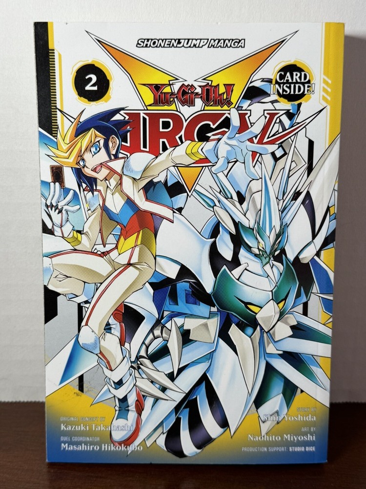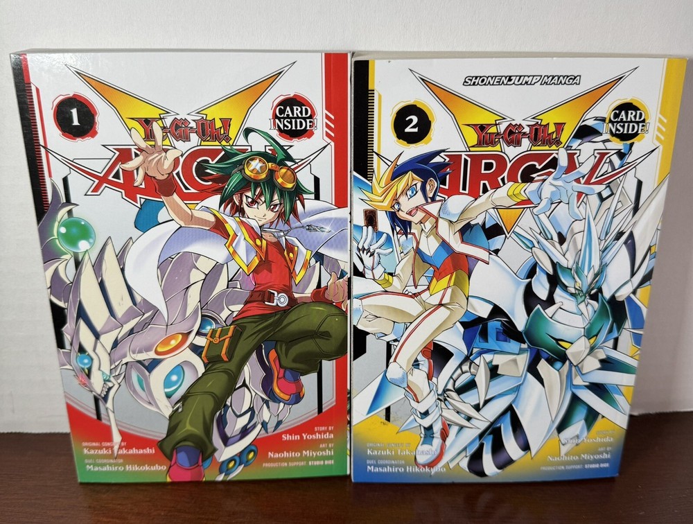 This lot includes volumes 1-2 of the Yu-Gi-Oh! Arc-V Manga series by Shin Yoshida and Kazuki Takahashi. Published by VIZ Media in 2017, these 1st printings are in English and come in softcover format. The set does not include cards and is a must-have for fans of the Yu-Gi-Oh! universe.