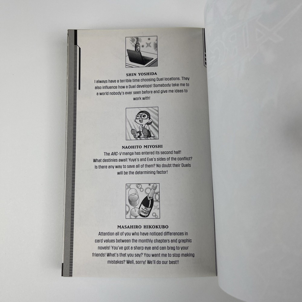 This listing is for "Yu-Gi-Oh! Arc-V Vol. 5 Manga" – Good condition, perfect for collectors and fans of the Yu-Gi-Oh! series! This volume features an exciting duel between Reiji Akaba and Isaac in outer space, with stunning illustrations by Naohito Miyoshi and a gripping story by Shin Yoshida. The cover is vibrant, with minimal shelf wear, and the spine is intact. Includes dynamic action panels showcasing iconic duels and Pendulum Summons. Published by VIZ Media, this is a must-have for manga enthusiasts or Yu-Gi-Oh! card game players. Add this rare gem to your collection today! Condition: Pre-owned and in good condition. Minimal wear and scuffs mark with normal use. NO CARDS ALL ITEMS ARE SOLD AS-IS AS PHOTOGRAPHED. PROPS NOT INCLUDED.