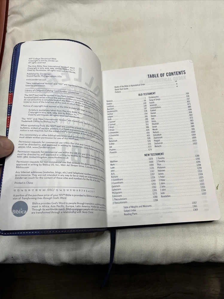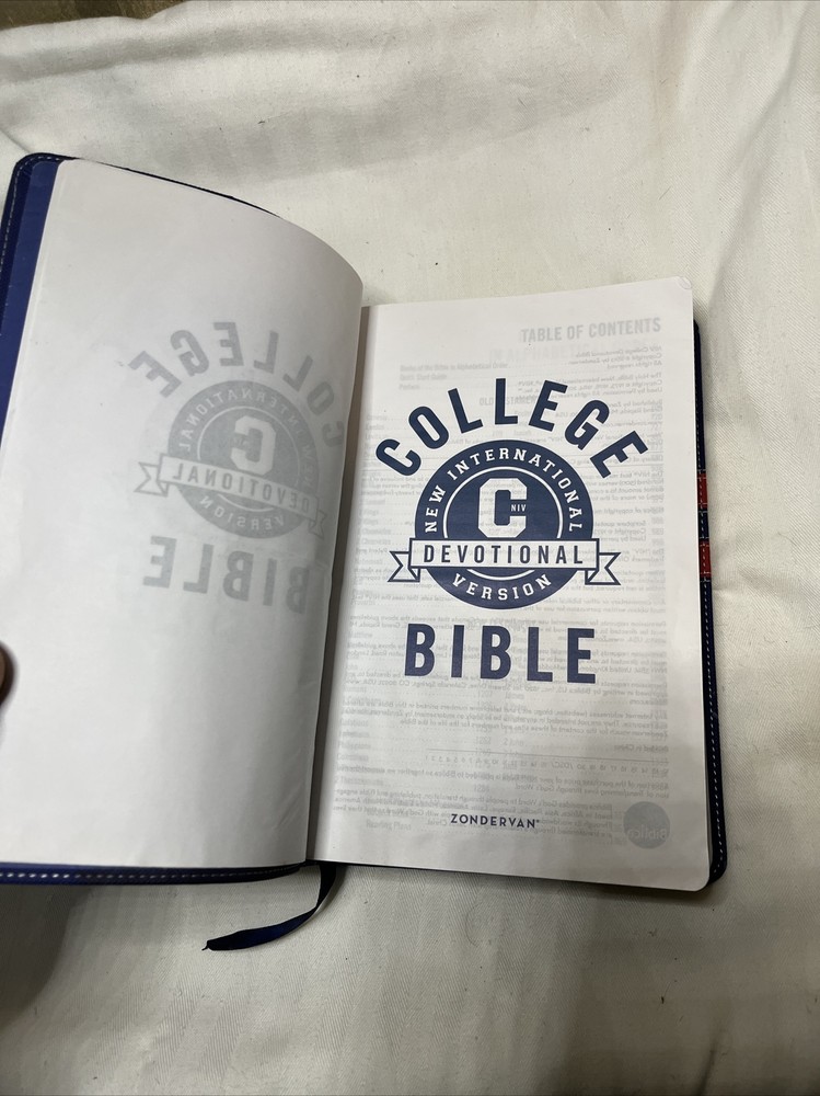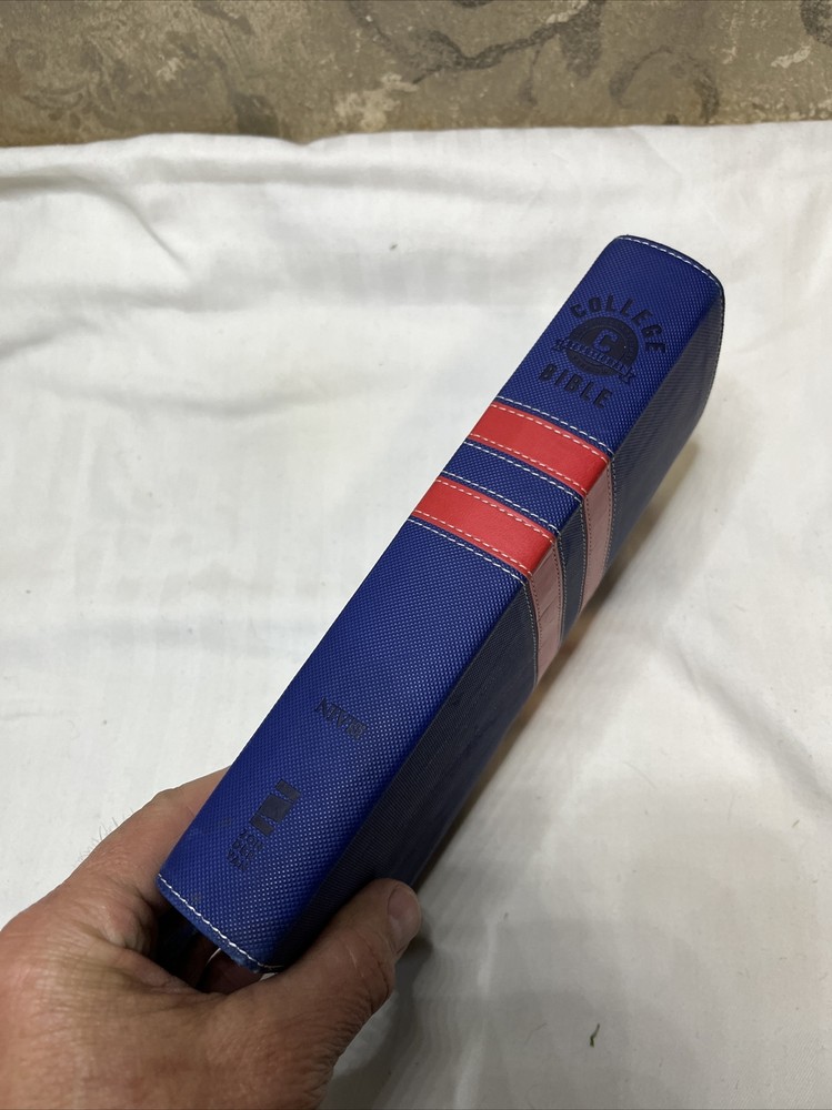 NIV College Devotional Bible Italian Leather Navy Red Edge Standard Zondervan
