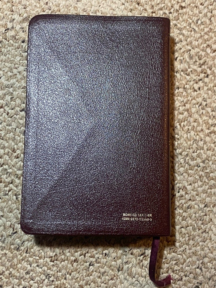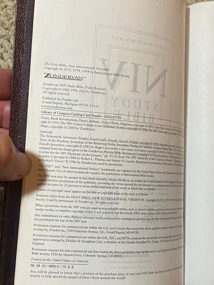 Zondervan NIV Study BIBLE 2002 Burgundy Bonded Leather Red Letter Fully Revised. The Bible is in good preowned condition. Has the previous owners name crossed out inside the front. See the pictures and contact me if you have any questions.