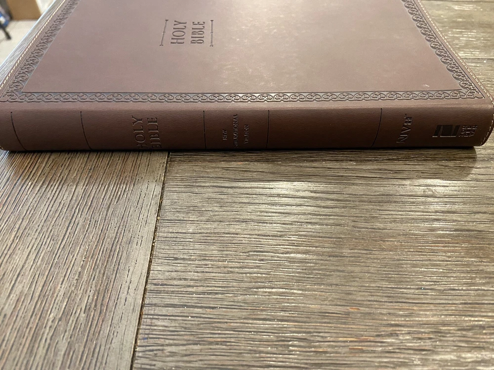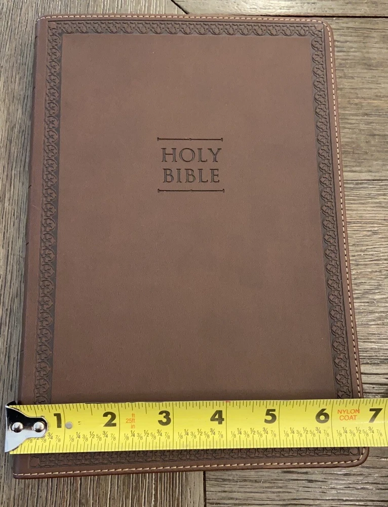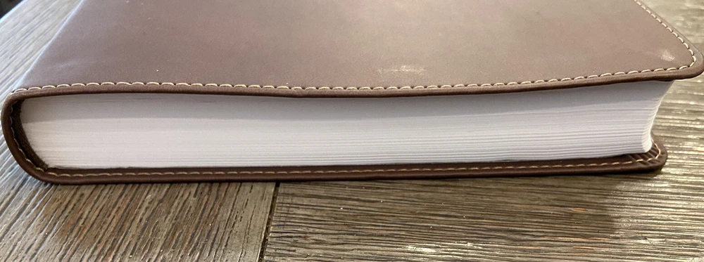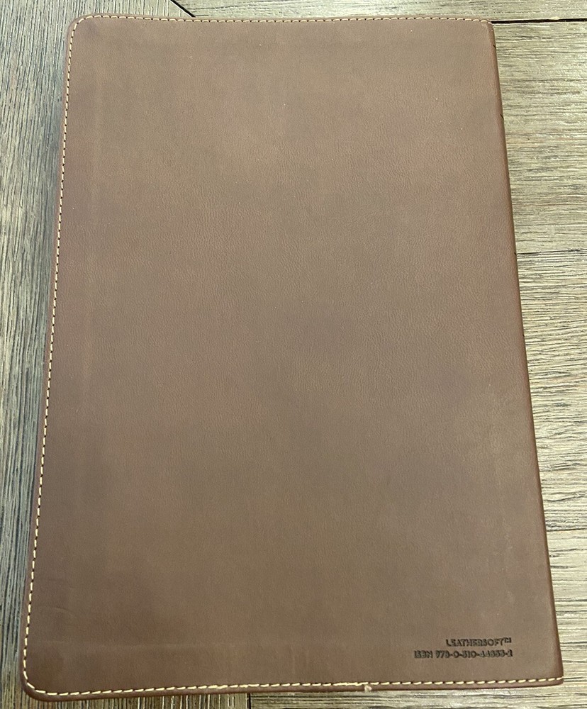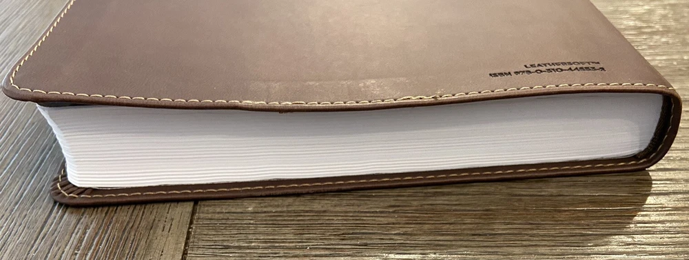 Bible is in very good condition no writing or highlighting. Soft leather is in very good condition as well. Only flaw is the first blank page as you open Bible was cut out see last picture. Let me know if you have any questions or need more pictures.