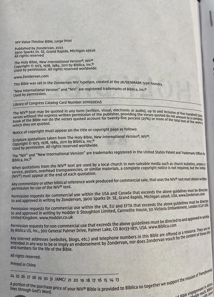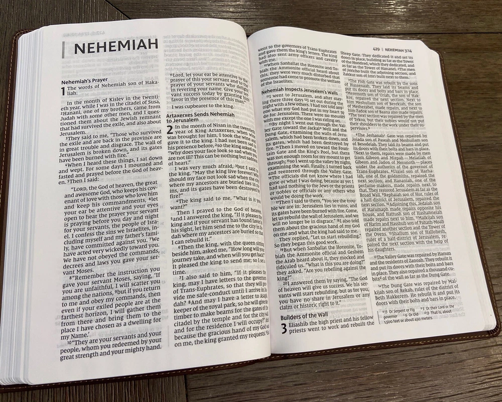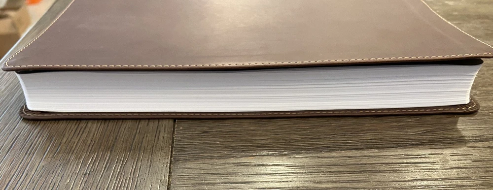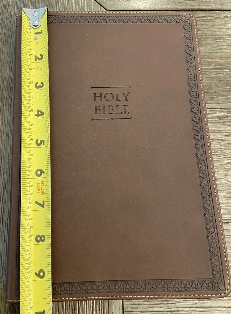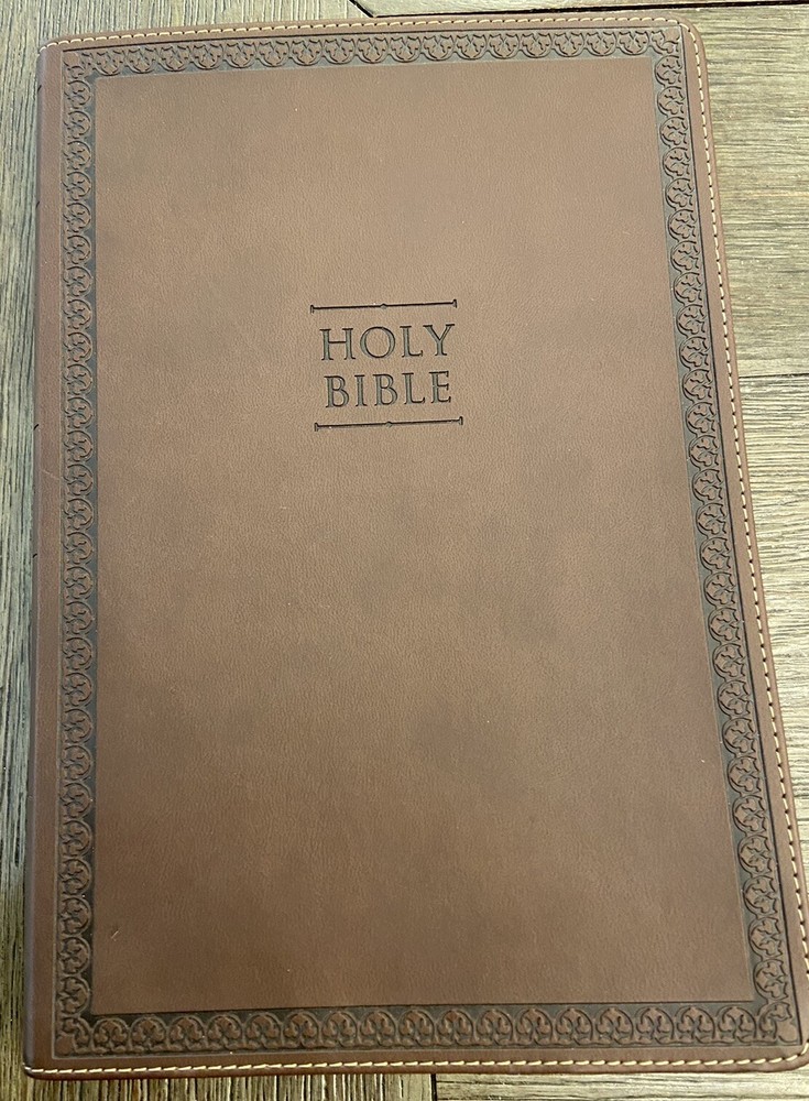 Bible is in very good condition no writing or highlighting. Soft leather is in very good condition as well. Only flaw is the first blank page as you open Bible was cut out see last picture. Let me know if you have any questions or need more pictures.