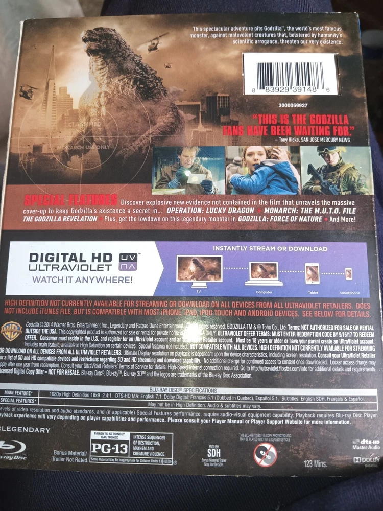 Experience the epic adventure of Godzilla (2014 film) with this blu ray, DVD, and UV combo edition. Fully immerse yourself in the MONSTERVERSE with this Kaiju-filled movie, perfect for any fan of the genre. This edition includes both blu ray and DVD formats, as well as the added convenience of a UV digital copy. Get ready to witness the ultimate battle between monsters, as Godzilla rises to protect the world from destruction. Don't miss out on this must-have addition to any movie collection.