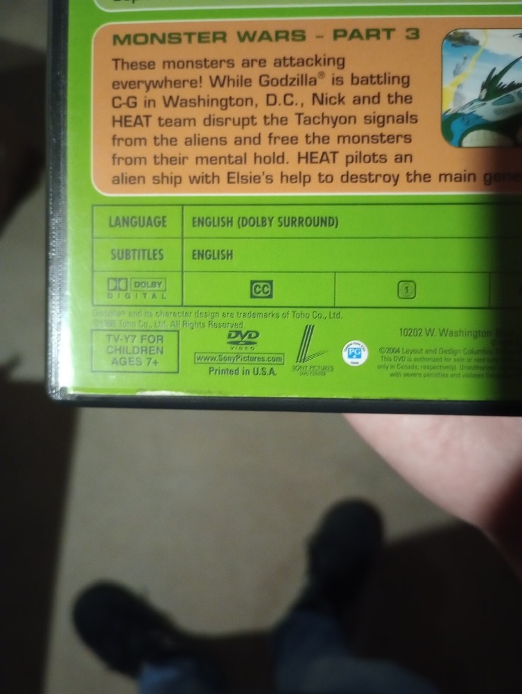 godzilla the series DVD. Wear on the case but still very good no scratches on the DVD...