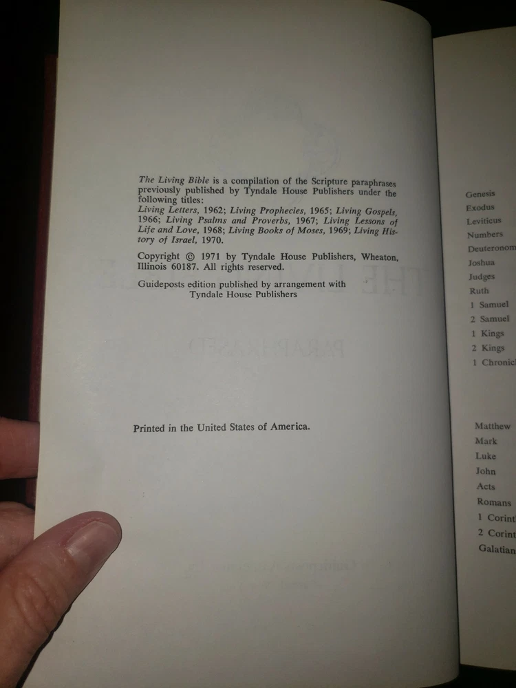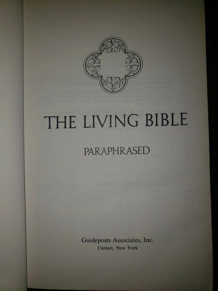 the living bible paraphrased by guide posts associates red leather cover....